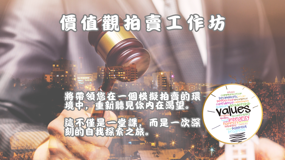 參加價值觀拍賣工作坊,將帶領您在一個模擬拍賣的環境中,重新聽見你內在渴望。這不僅是一堂課,而是一次深刻的自我探索之旅。