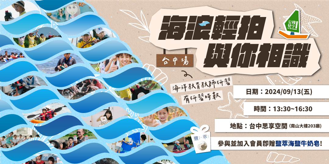13:00~13:30 報到(建議於13:20前完成報到,並加入公視兒少教育資源網會員,以領取精美海鹽牛奶皂,感謝鹽萃共同支持海洋教育)