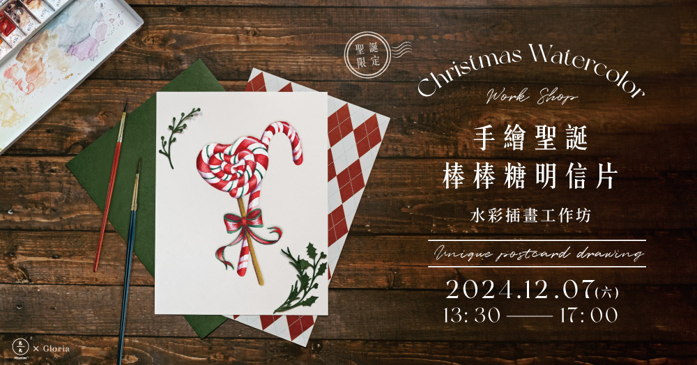 【聖誕限定】手繪聖誕棒棒糖明信片-水彩插畫工作坊