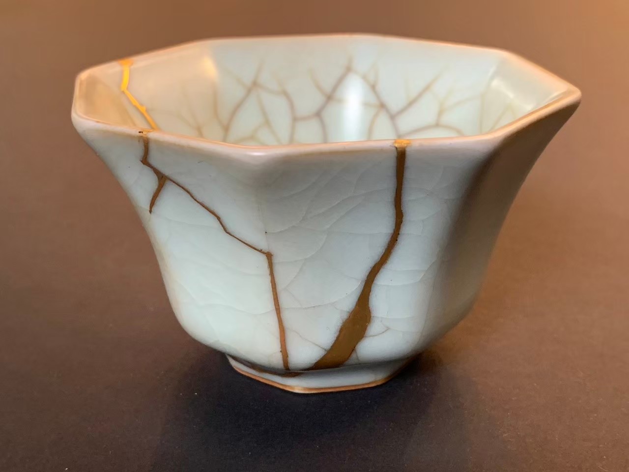 金繕修復特別之處,並不是讓損壞或裂痕隱形消失,而是將缺陷裂縫描以純金純銀,突顯不完美,展現世上獨一無二的本體,頗有禪學之意味。