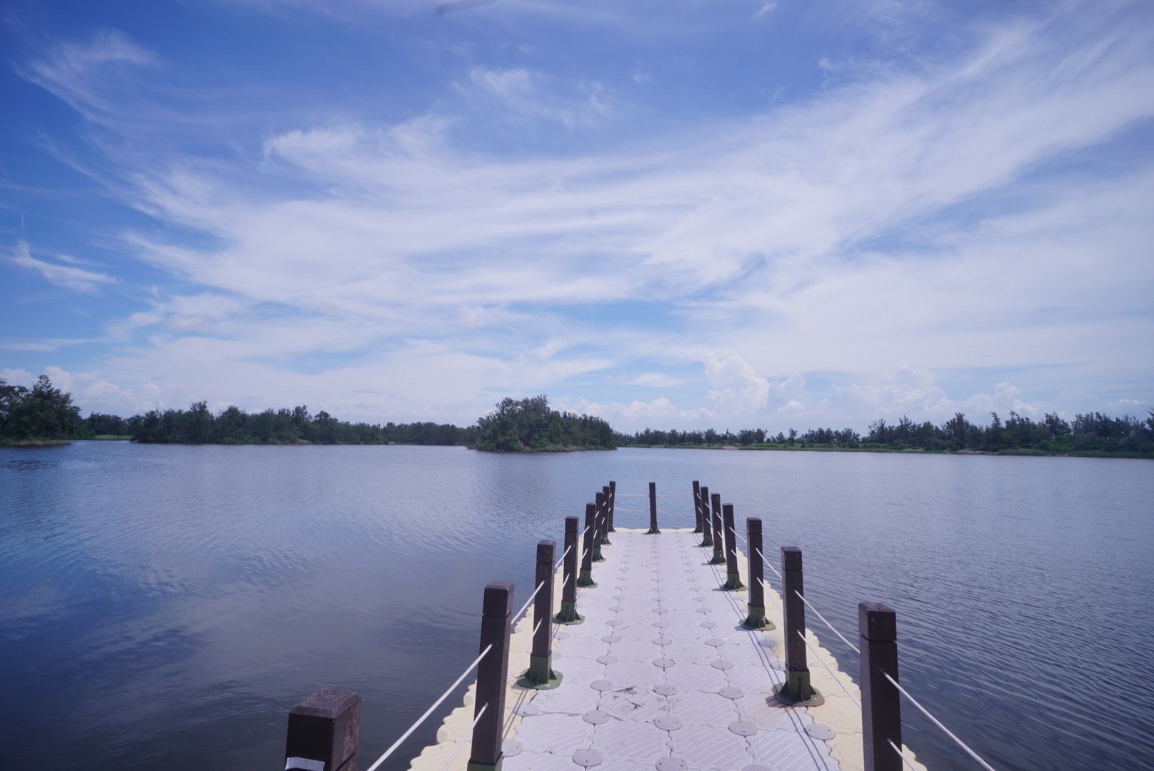 後續由領騎老師帶領大家騎自行車前往成龍濕地,參觀與導覽。