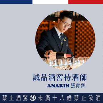 搭配酒窖駐店新銳專業侍酒師 Anakin 嚴選法國經典酒款,一次品飲來自 5 大酒莊的 6 款超值佳釀: