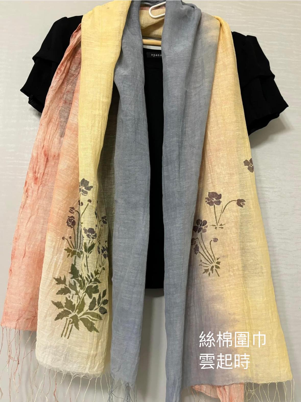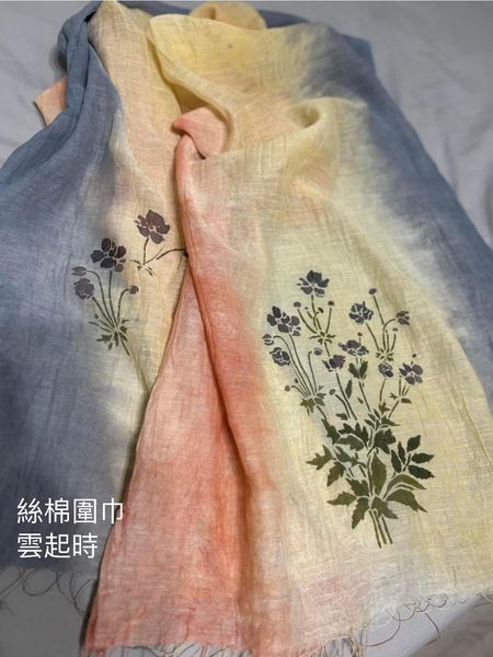 春泥護花/礦泥型染 絲棉流蘇圍巾
