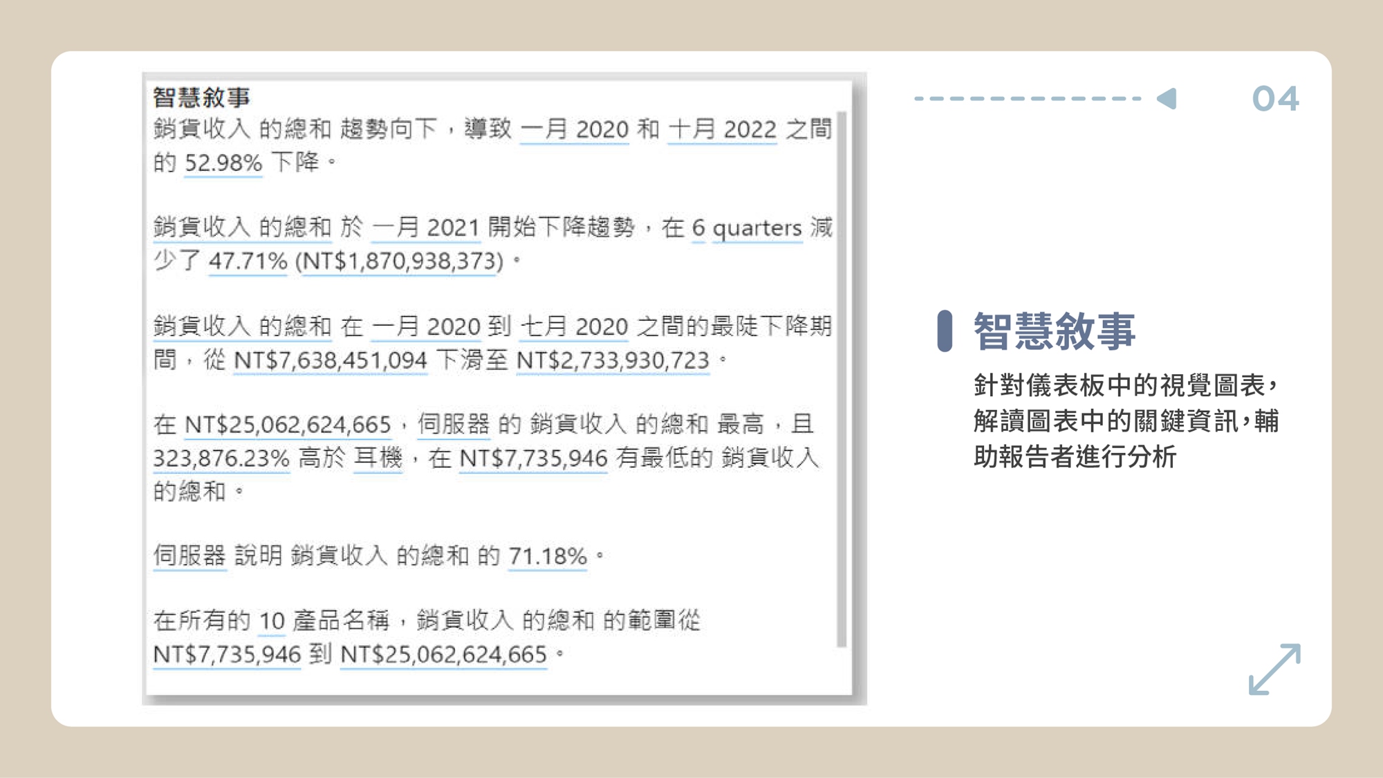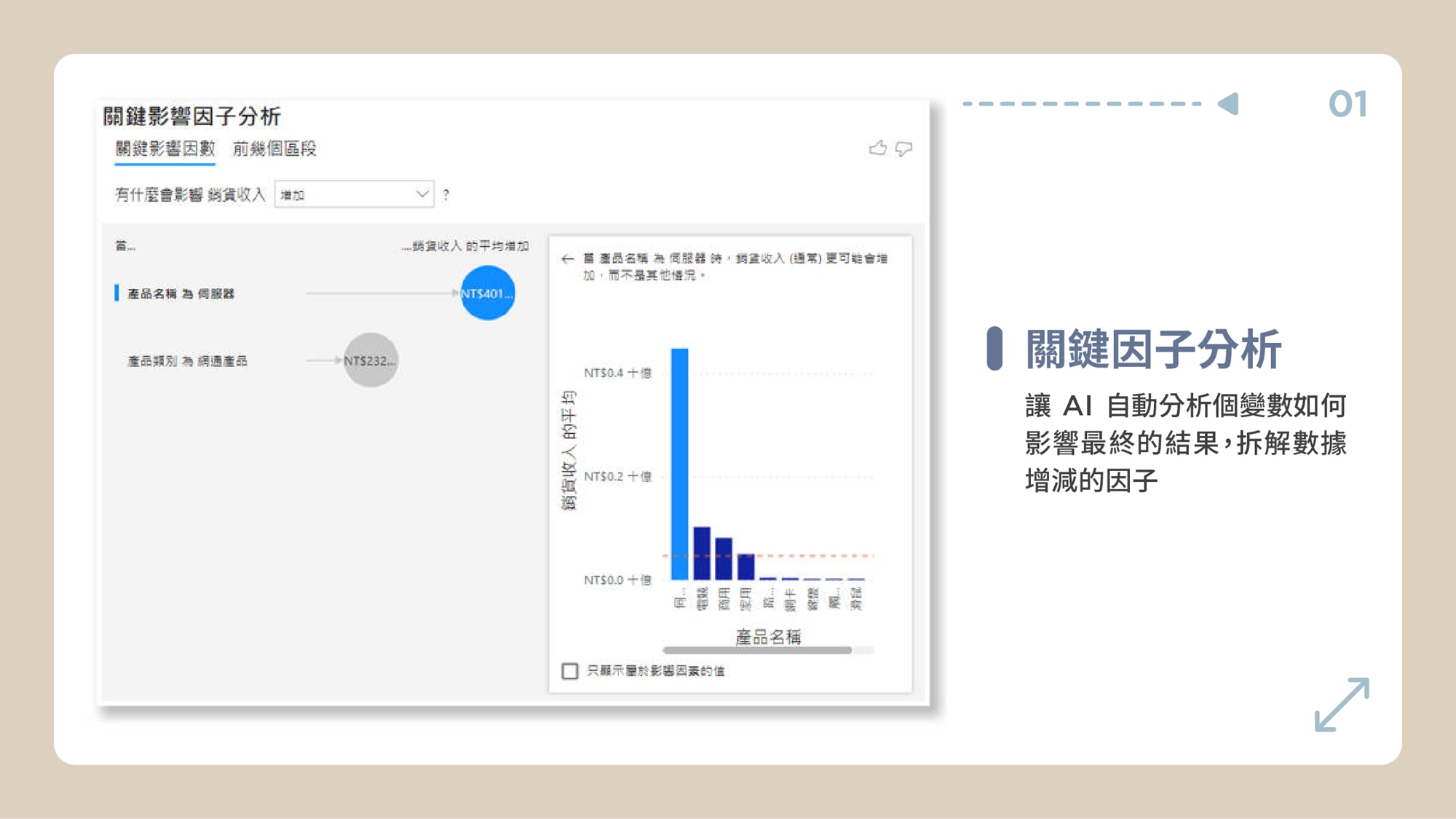 - 洞察數據下的資訊:運用內建下鑽、組成功能,找出數據下的秘密
