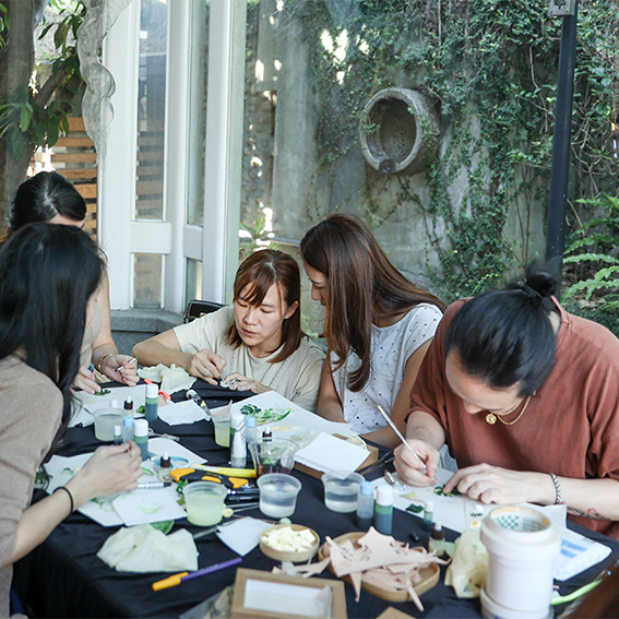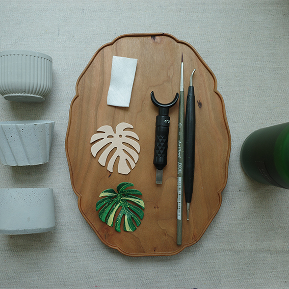在這堂體驗課中,會以不同的方式切入皮革體驗,運用不同顏色的皮革染料染出植物的自然色澤,老師會帶領您使用雕刻刀描繪葉脈,並用壓克力顏料畫出美麗的斑紋。塑形成立體後將作品裱框起來,可以成為家中或辦公室的療癒擺飾。