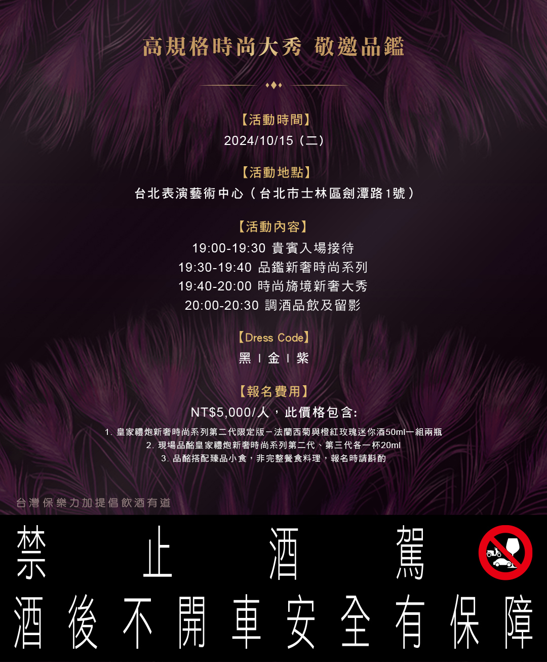 *現場品酩約十分鐘左右,將於現場安排站席,報名時請斟酌考量*