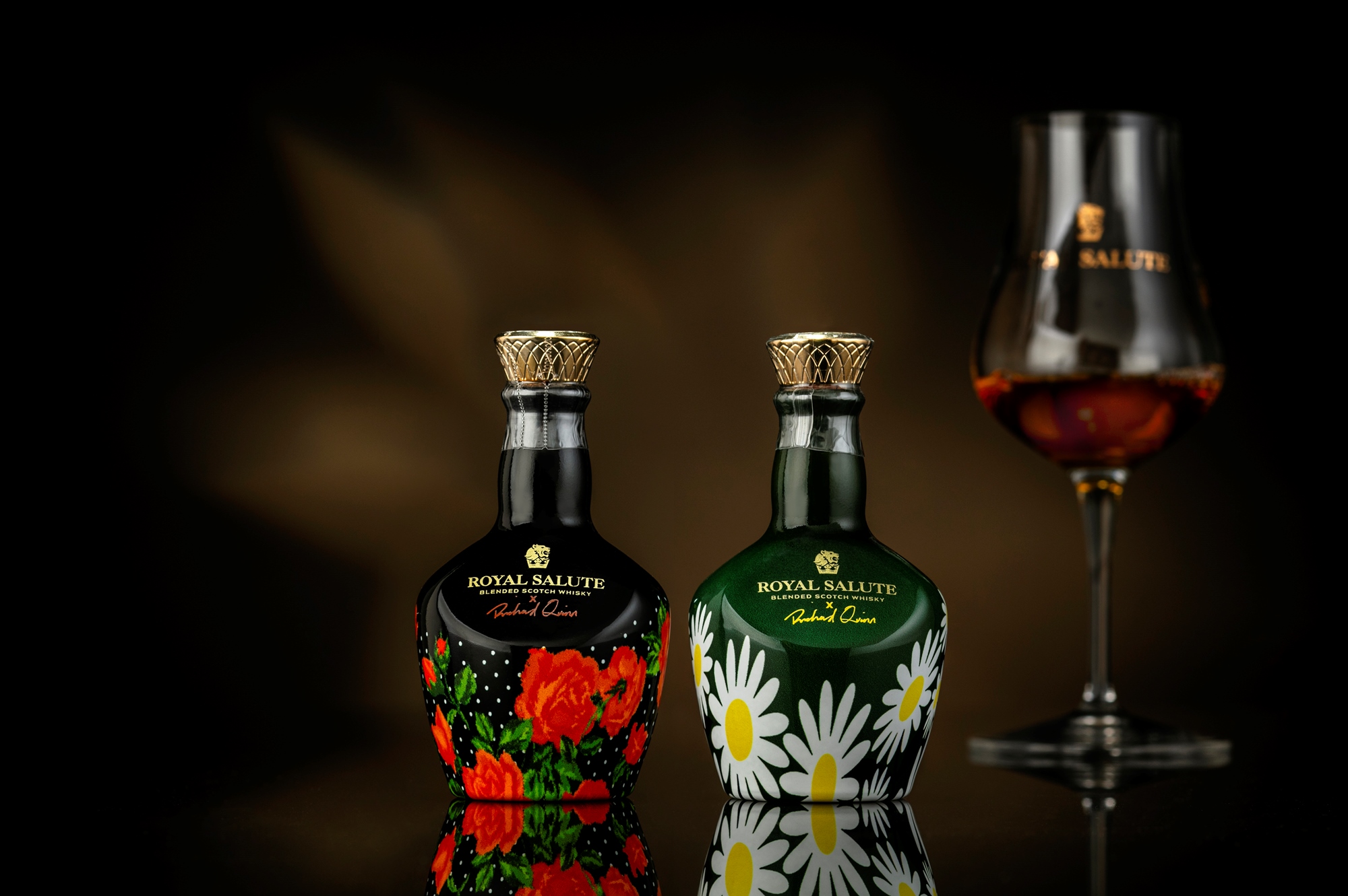 1. 皇家禮炮21年新奢時尚系列第二代限定版-法蘭西菊與橙紅玫瑰迷你酒 50ml 一組兩瓶(市值NT$4,000)