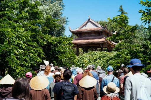 在梅村,將正念融入日常生活中,培養覺醒之心。無論我們在進食、行走、掃地,或者一起共聚喝茶,每一刻都是學習培養喜悅和正念的時刻。