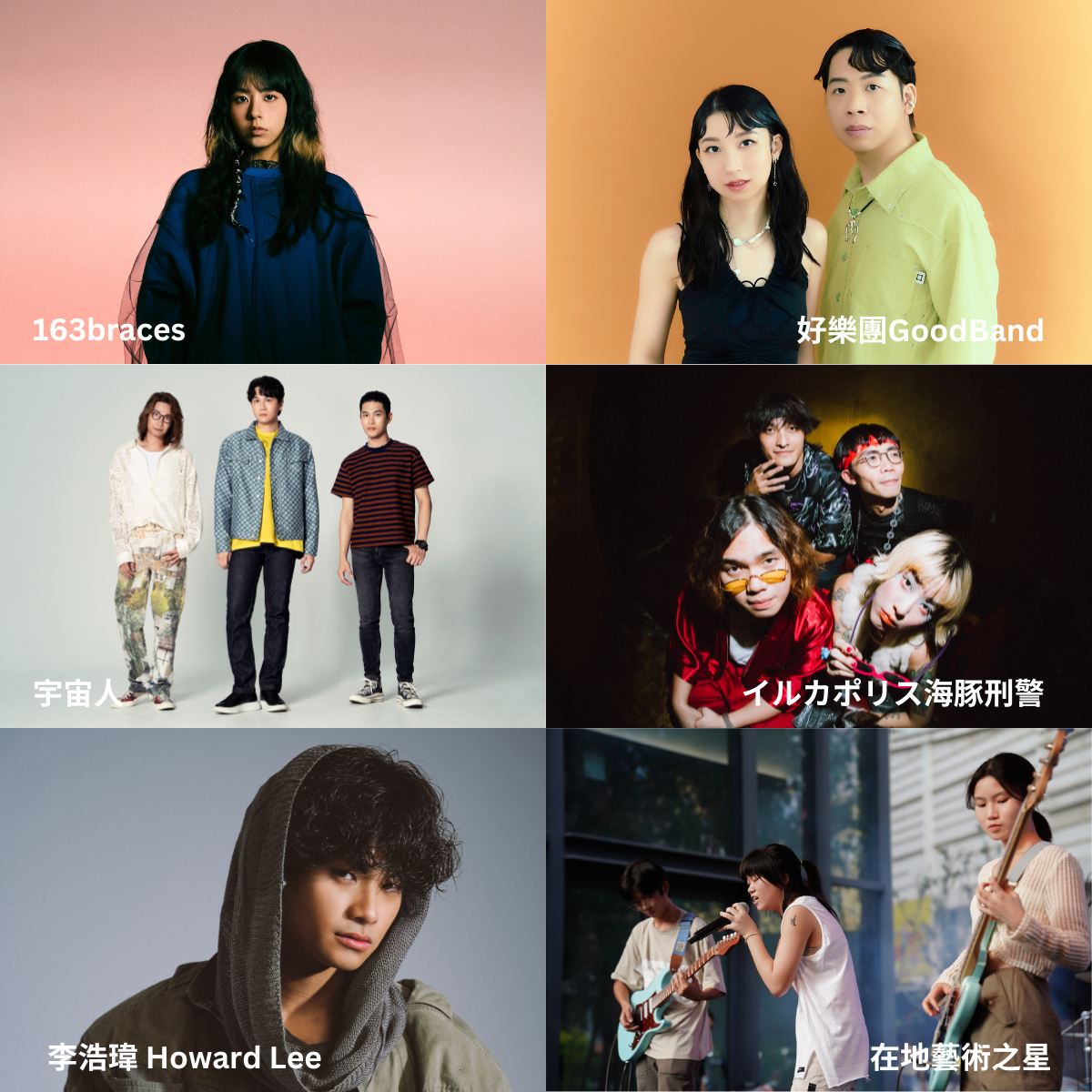 - 演出卡司:宇宙人、李浩瑋 Howard Lee、好樂團 GoodBand、163 braces、イルカポリス海豚刑警