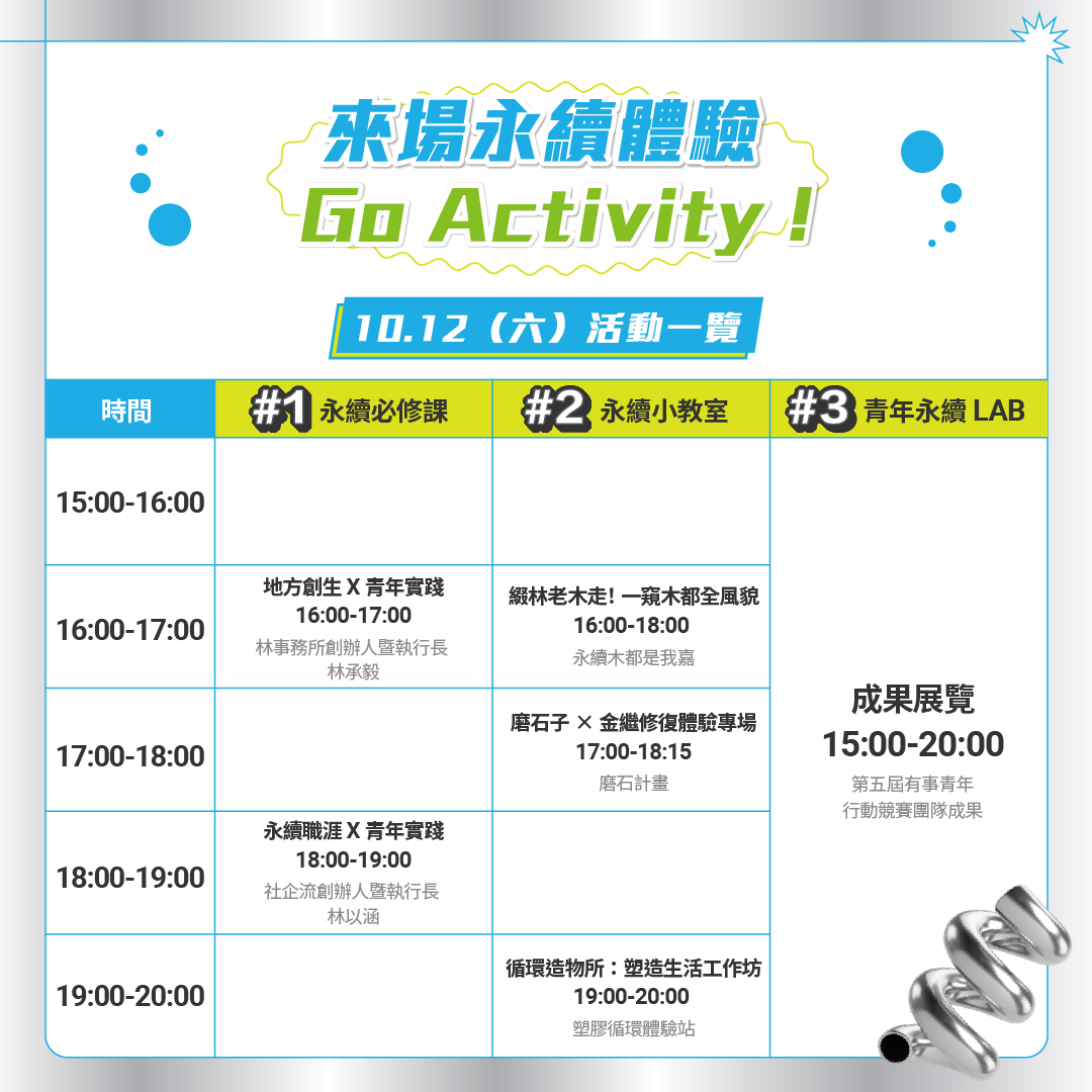 - 活動日期:10/10 ㊄ > 10/20 ㊐