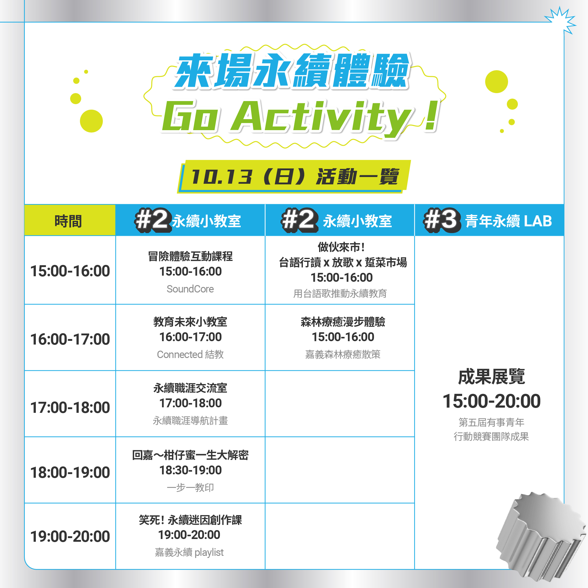 - 活動日期:10.17 ㊃ |10.18 ㊄ |10.20 ㊐
