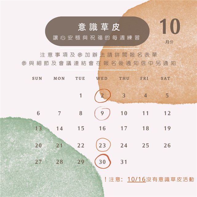 ★ 意識草皮原為每個月都會舉辦的公益活動,會依據主辦的時間,有時會有暫停練習,您可以加入社群追蹤有舉辦的時間。