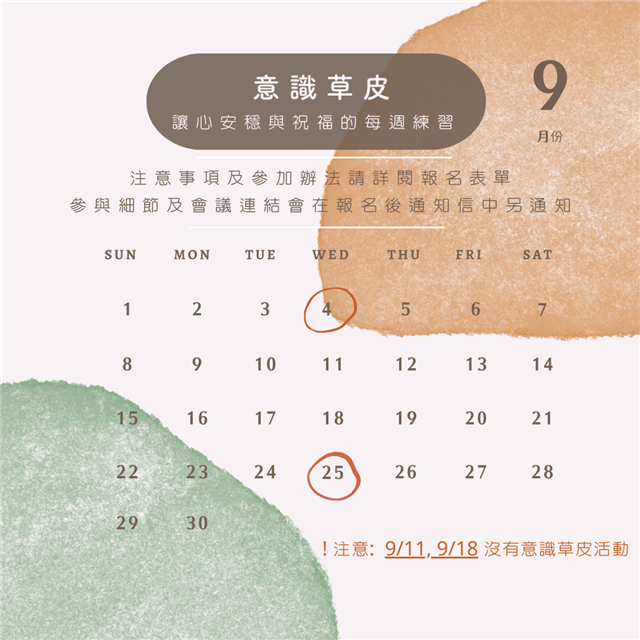 ★ 注意:這不是睡覺的練習,沒有催眠或導入睡眠的過程,請勿跑錯場子。參加前請您務必先看過注意事項~