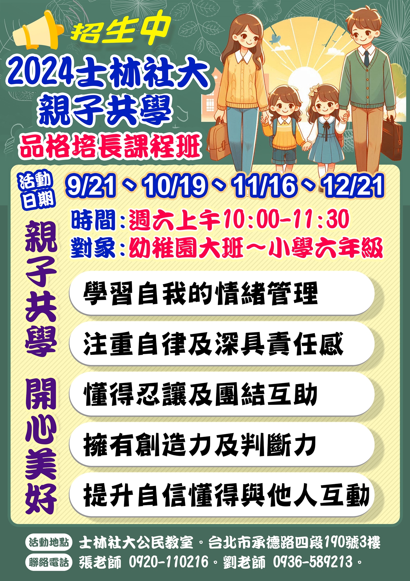 聯絡電話:士林社大執秘 黃先生 0921-198640
