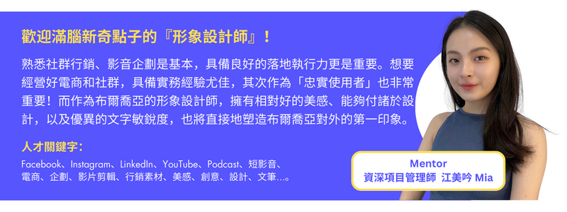 ➡中大型企業(跨產業領域)|Mentor:公關顧問副理 Hannah ( 顧問簡介 )需求人數:4-5位