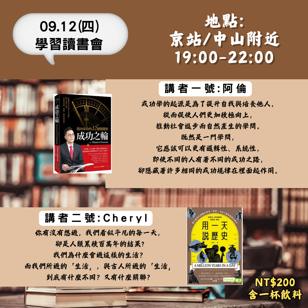會有2位朋友對於本次主題用多本書進行分享!