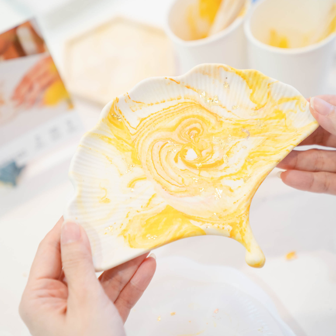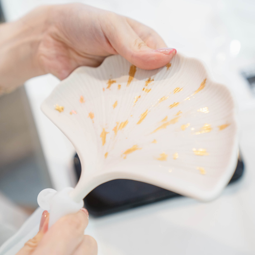◆輕鬆學習:現場提供專業用具和模具使用,手把手教你用JEMSONITE英國爵石做出獨一無二的質感金箔銀杏葉盤,就算沒經驗也不用擔心喔!