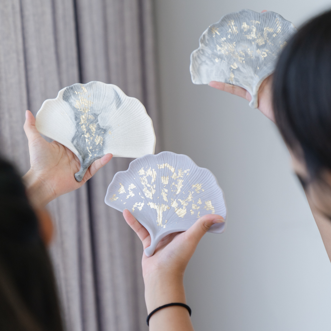透過型塑擁有自然弧線的銀杏葉盤🍁