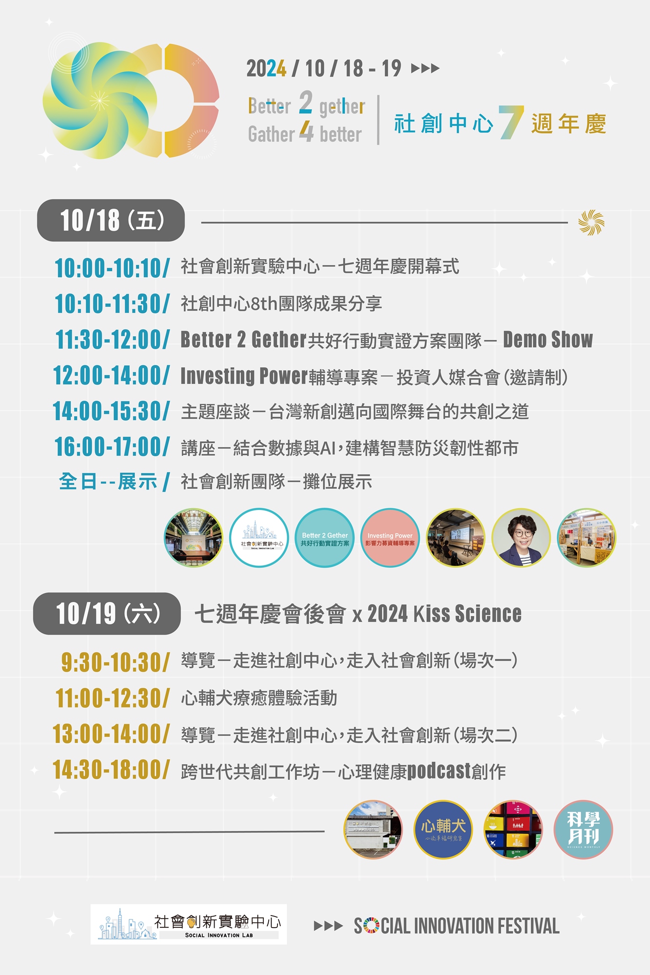 🎉10/18(五),社創中心七週年慶,2 gether 4 better All DAY 🎉