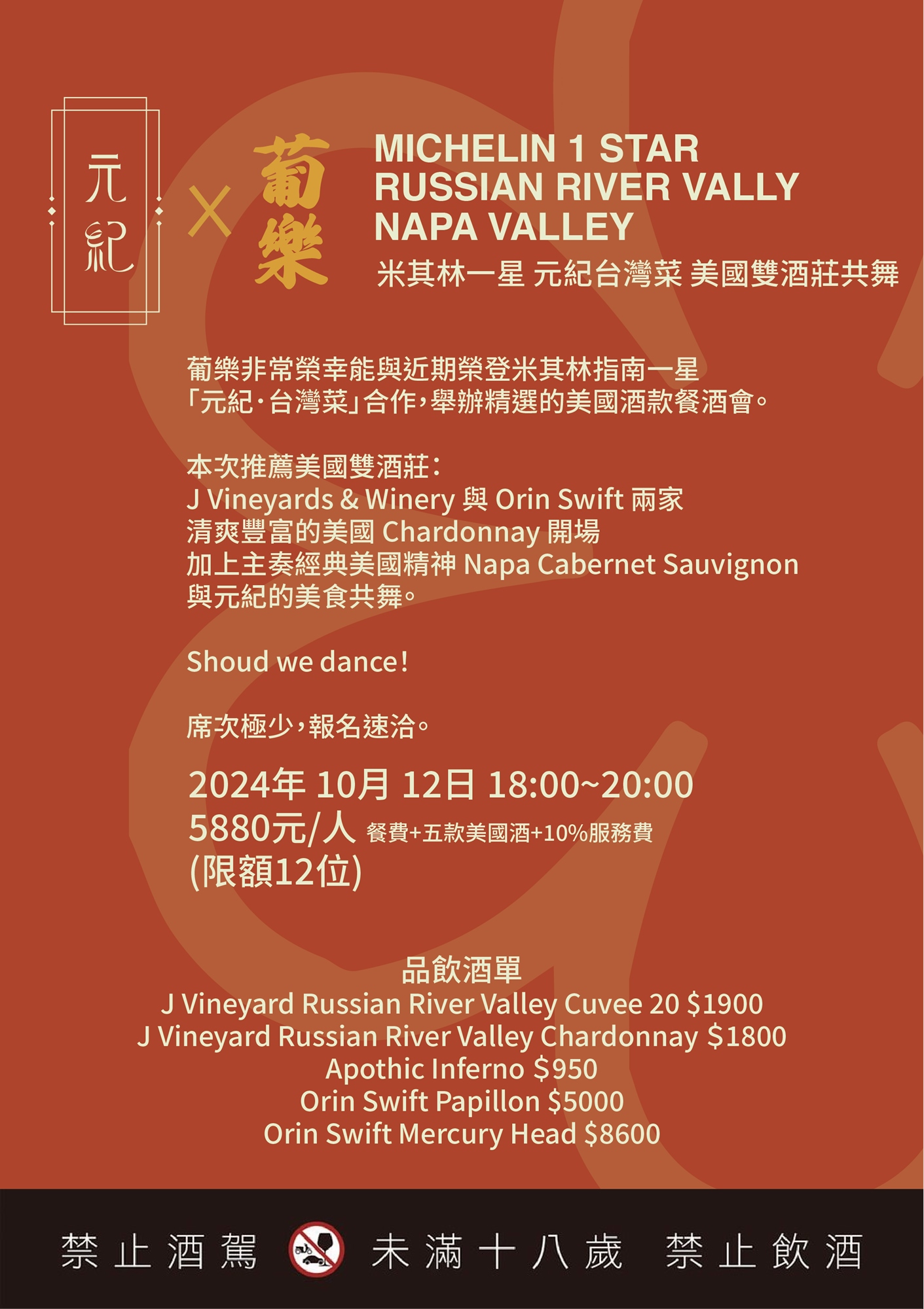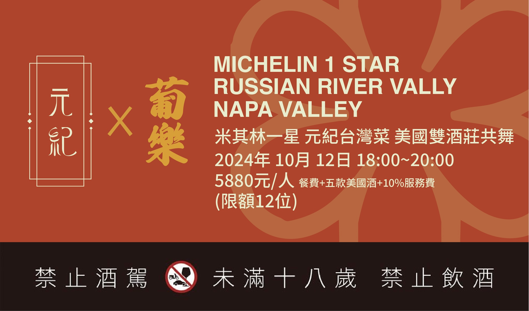 葡樂非常榮幸能與近期榮登米其林指南一星 「元紀.台灣菜」合作,舉辦精選的美國酒款餐酒會。