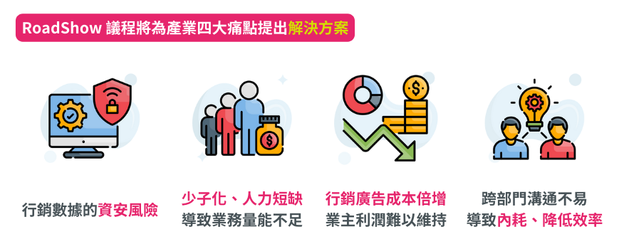 今年,禾多集團將再度攜手產業龍頭,與AI同行的 Likr RMN落地技術,為行銷團隊提供AI自動化解決方案。我們將從零售、電商及品牌的經營痛點出發,聚焦於破解營收瓶頸、提升廣告投放效益以及數據安全防護等領域。本次RoadShow將深入探討如何利用AI自動化技術,優化跨渠道廣告投放流程,減少部門間的溝通障礙,利用AI人機協作,達到效能及產能倍增,並通過最佳策略實現廣告收益最大化。
