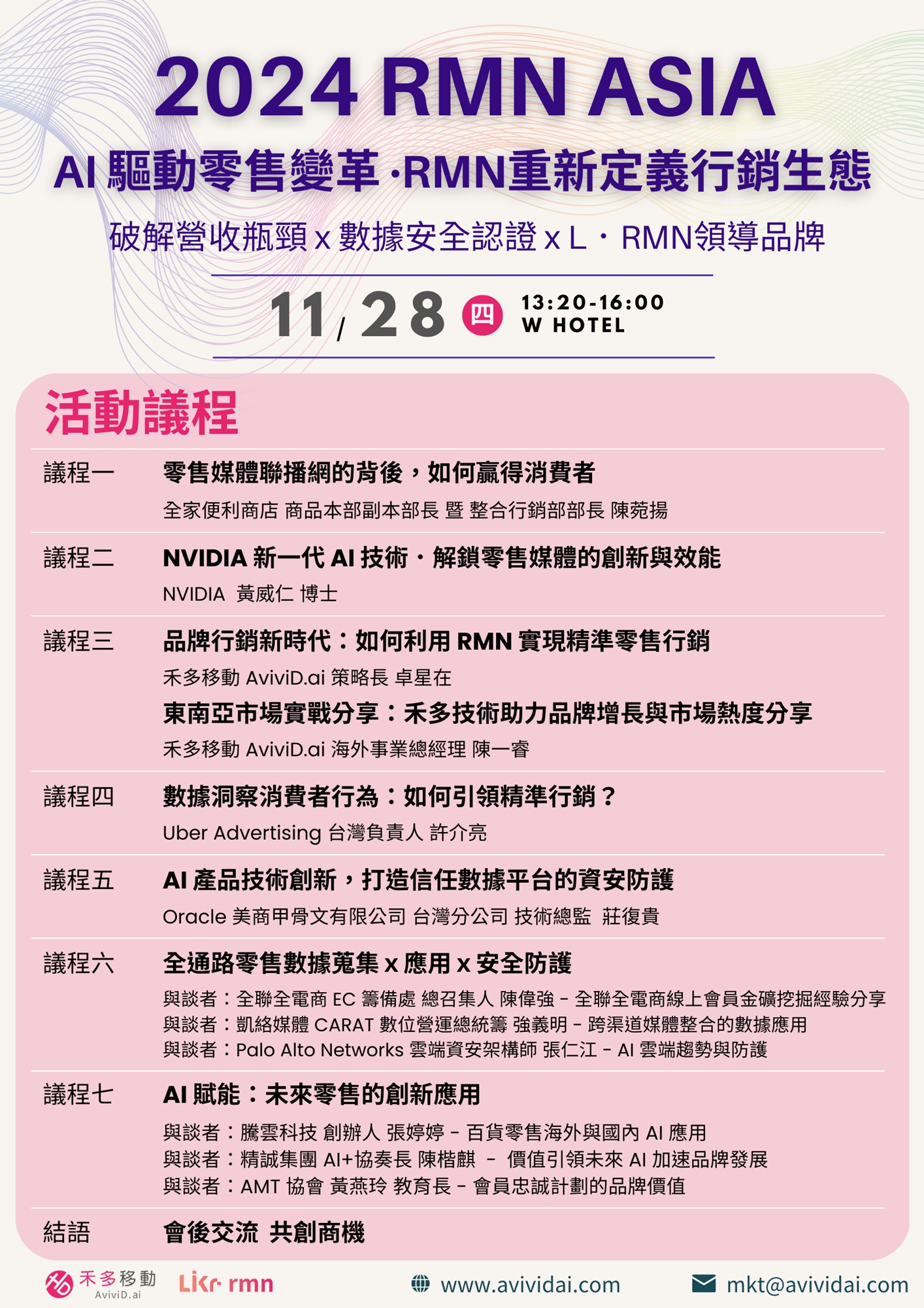 我們相信,AI加上RMN的技術不僅能破解營收瓶頸,更能重塑行銷生態,帶動市場突破。在這場匯聚產業專家與品牌領袖的論壇中,期待各位夥伴能夠與我們共同探索未來的無限可能,攜手開啟2025年 AI 驅動的全新零售變革!