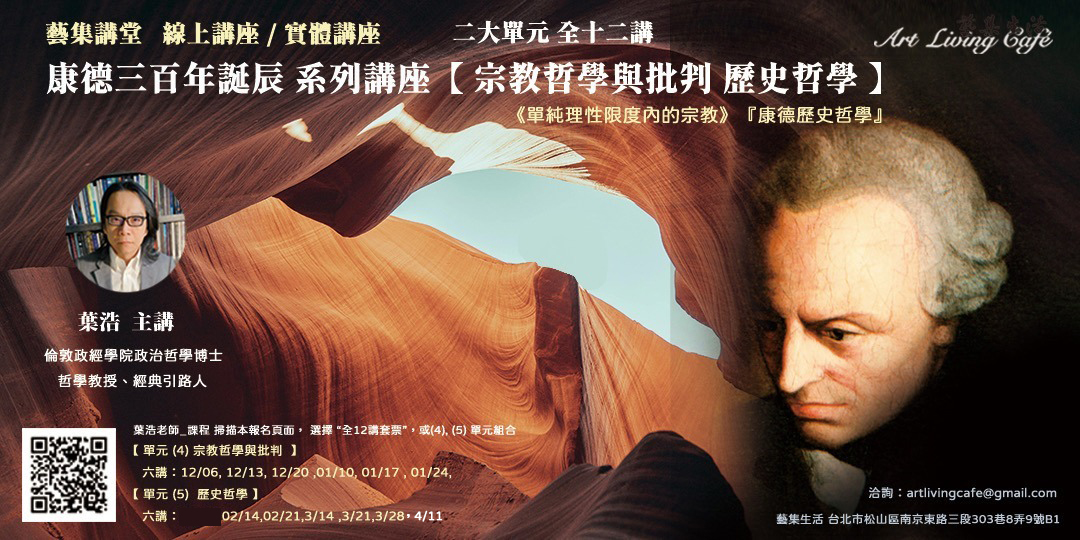 藝集講堂_康德三百年誕辰特別企劃 | 葉浩【康德宗教與歷史哲學】此岸與彼岸的再思 _ 全 12 講 (純線上課程 / 實體課程 )
