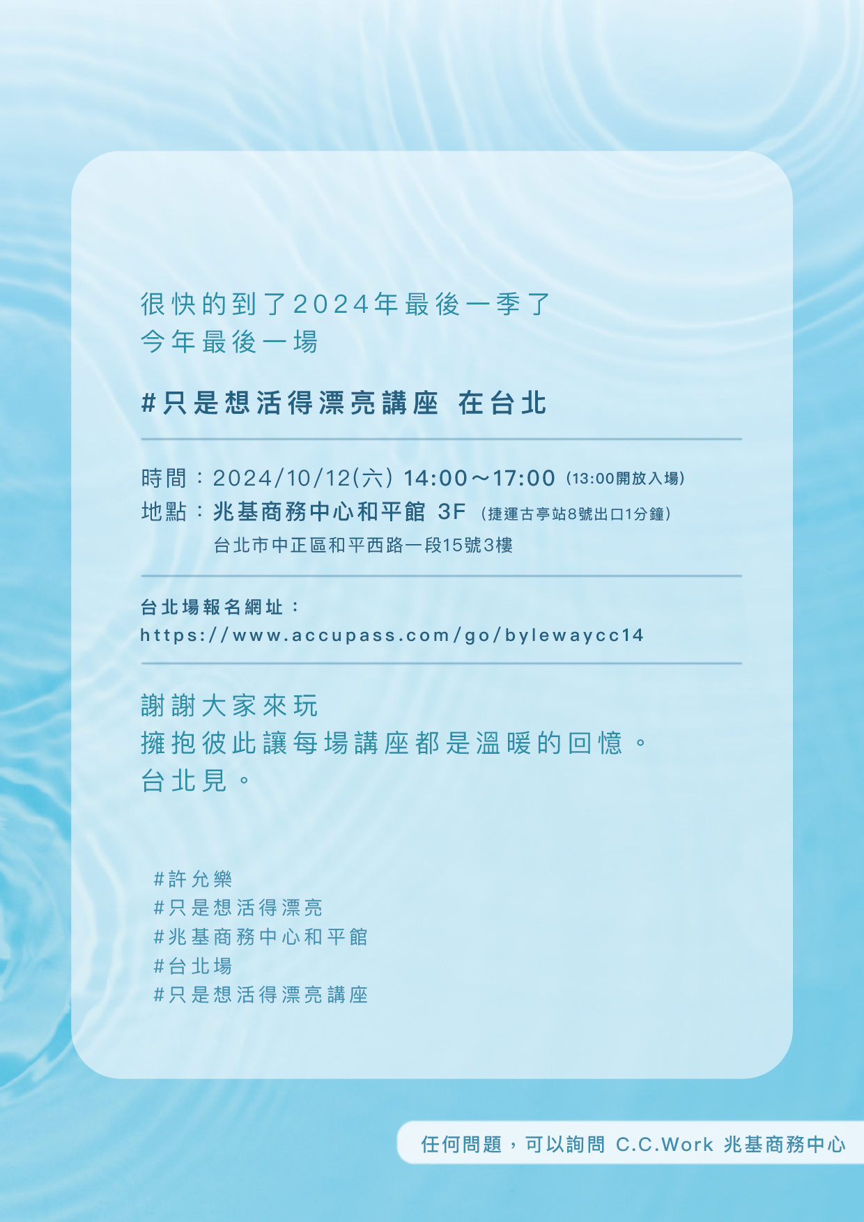 許允樂|只是想活得漂亮講座|2024 台北場|兆基商務中心.和平館