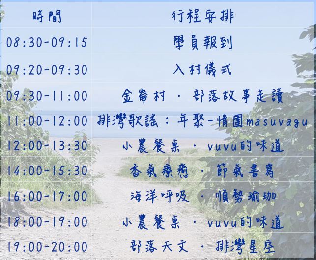 (本活動行程會依照活動當天天氣狀況彈性調整)