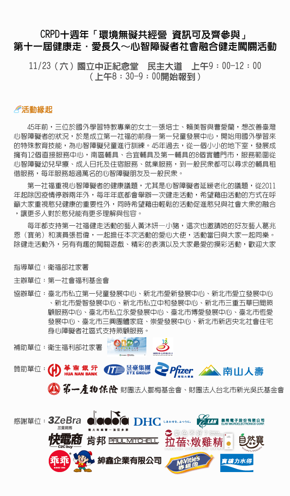 第十一屆健康走‧愛長久~心智障礙者社會融合健走闖關活動