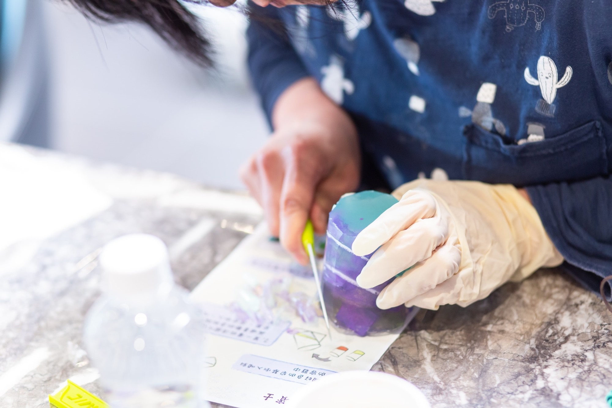 專業師資帶領教學寶石手工皂設計,包含色彩的搭配挑選到製作技巧,一步步帶領大家用專業級美感製作獨一無二的手工皂,透亮美麗的色彩讓人感到舒壓與療癒。