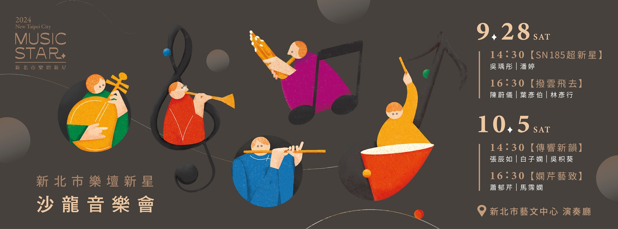 今年首度以傳統音樂演奏及演唱類別選拔,眾多傑出音樂家脫穎而出的新星,從9-10月沙龍音樂會以小型室內樂、現場演奏搭配音樂導聆方式開始,引領觀眾欣賞傳統音樂的奧妙之外,11/17(日)《2024新北市樂壇新星聯合音樂會》,新星們將攜手演出最精彩與完整的內容,是絕對不能錯過的傳統音樂饗宴。