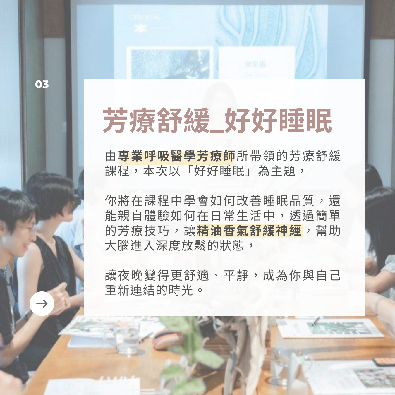 徐菀庭 Irene老師 課程費用 $750 - 9/29 (日) 14:50-16:00 芳療舒緩 好好睡眠主題