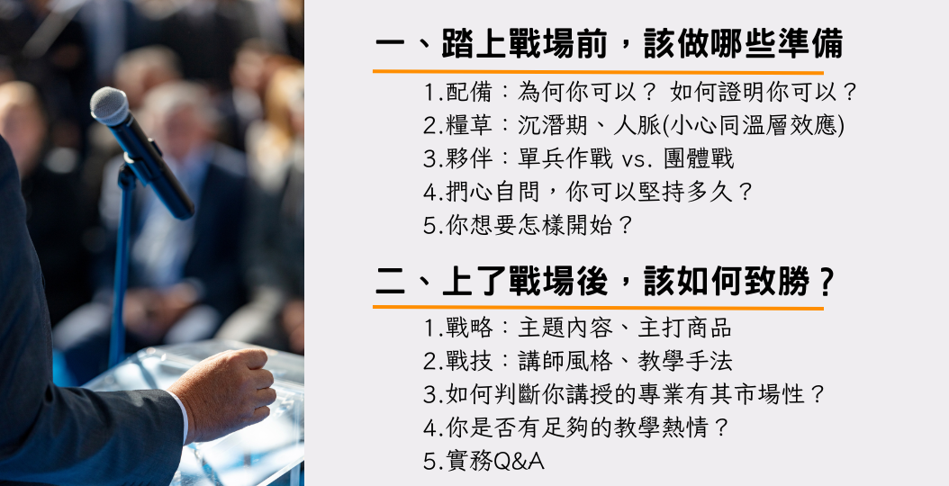 是少數能夠從市場需求端與講師經營端兩個層面切入問題的業界前輩,