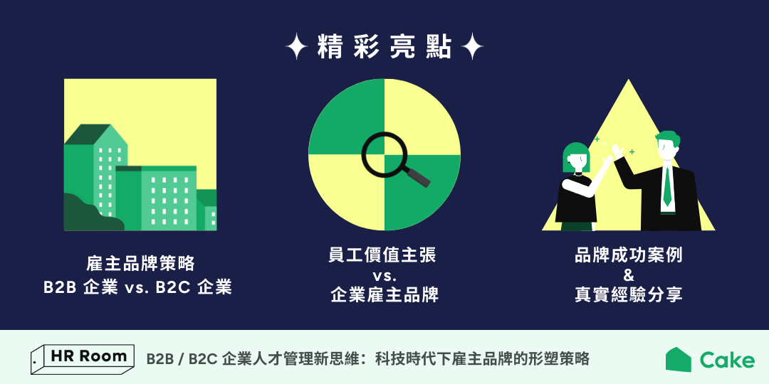 近一步透過成功案例分享 B2B、B2C 企業如何由外而內打造強力的雇主品牌,幫助人才招募、增進員工體驗,進而提升整體人才經營管理效率!