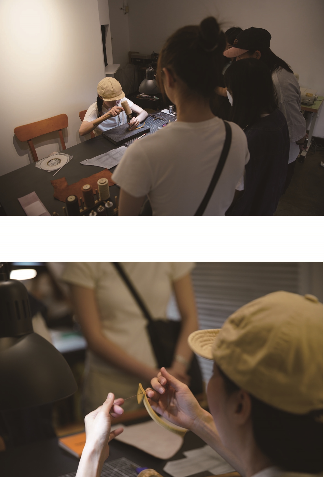 - 我們會讓大家參與大部分製作皮革的程序,從裁皮開始,最後還會教大家植鞣革收邊的技巧。