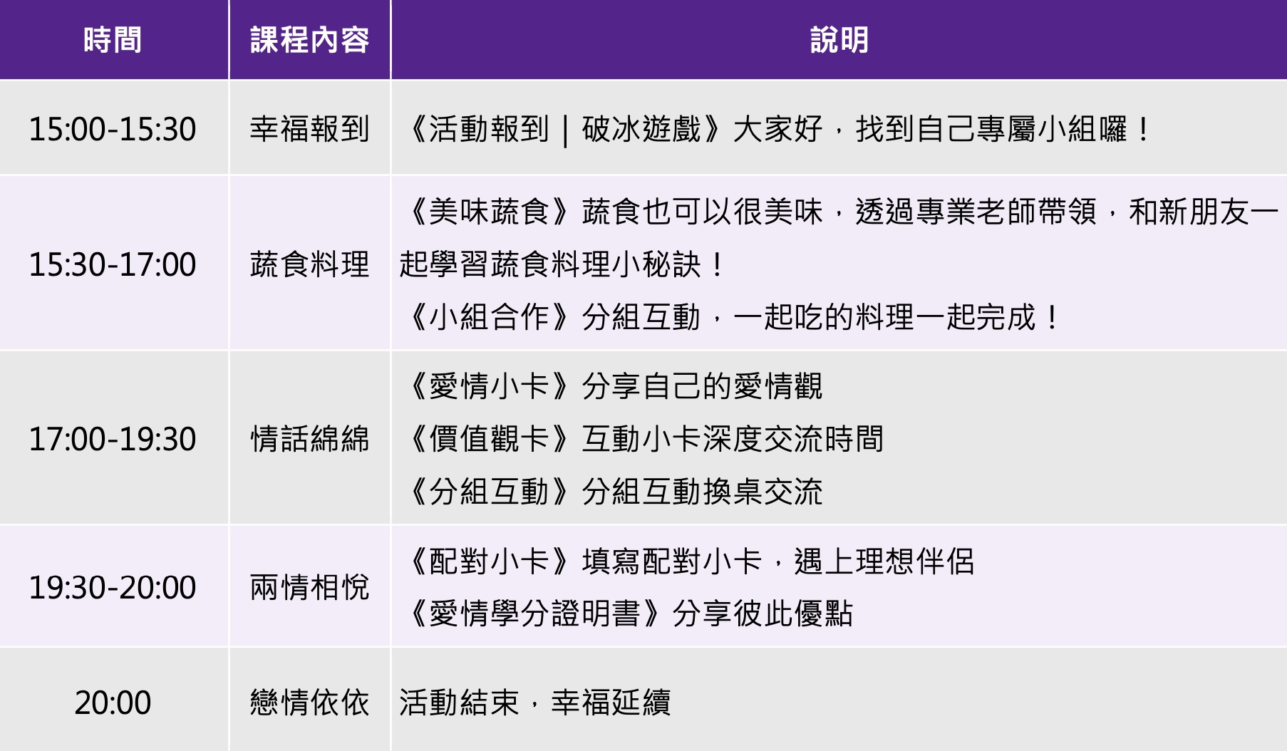 2、參加者應保證其感情狀態為單身(未婚、離婚、喪偶)。婚姻關係存續中、已有婚約、同居或有交往對象者,均不符合參加資格。