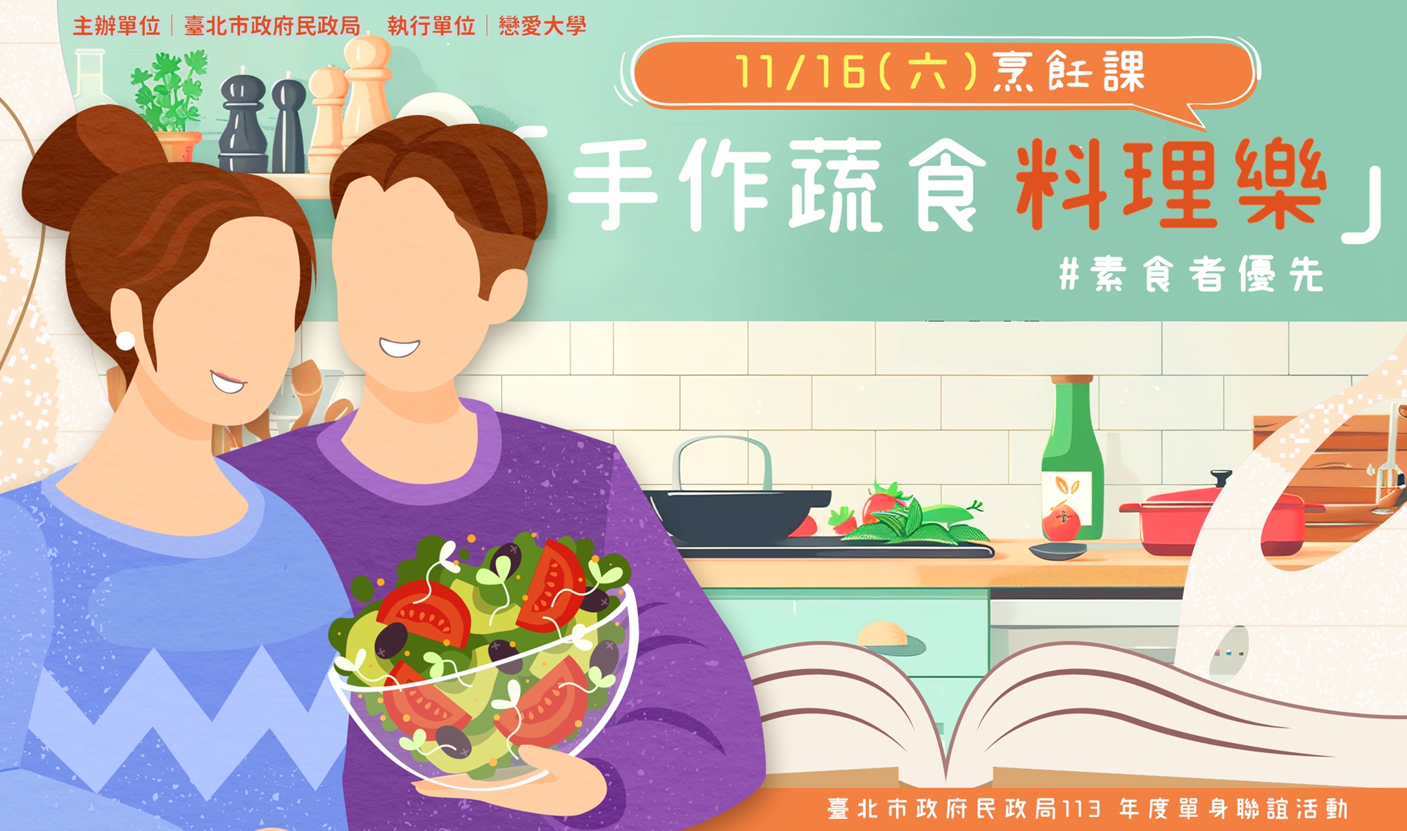 一起在歡樂的氛圍中,品嚐蔬食的美味,輕鬆互動認識新朋友!