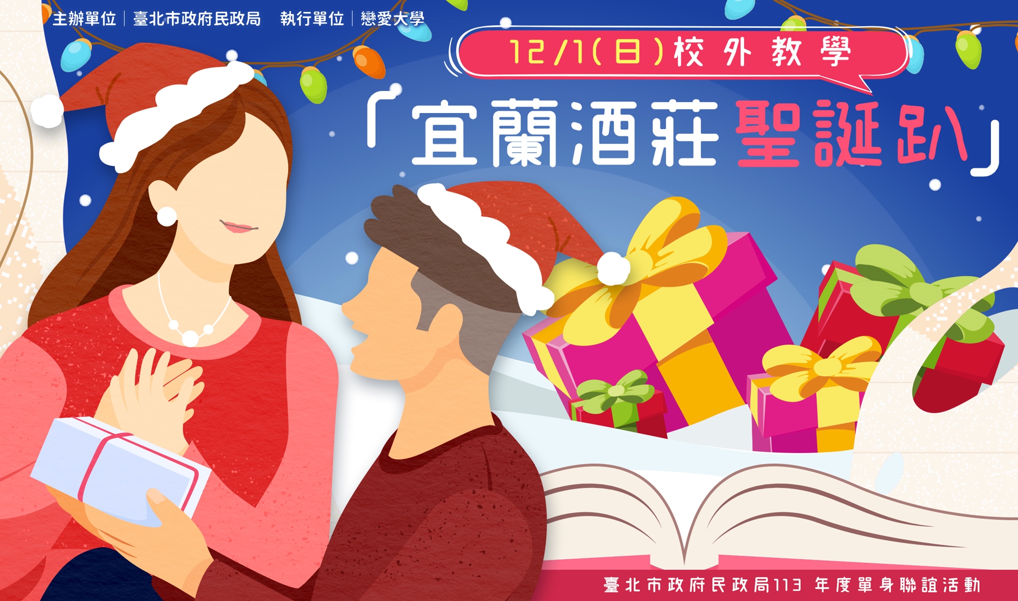 最歡樂的聖誕派對來囉!聖誕交換禮物、精美禮物大放送等活動,用旅行的方式帶大家遠離台北,到宜蘭秘境酒莊,度過一個美好的歡樂時光。*敬請每位參加者自行準備200元的交換禮物帶到現場!和新朋友一起來一場開心的交換禮物派對囉!