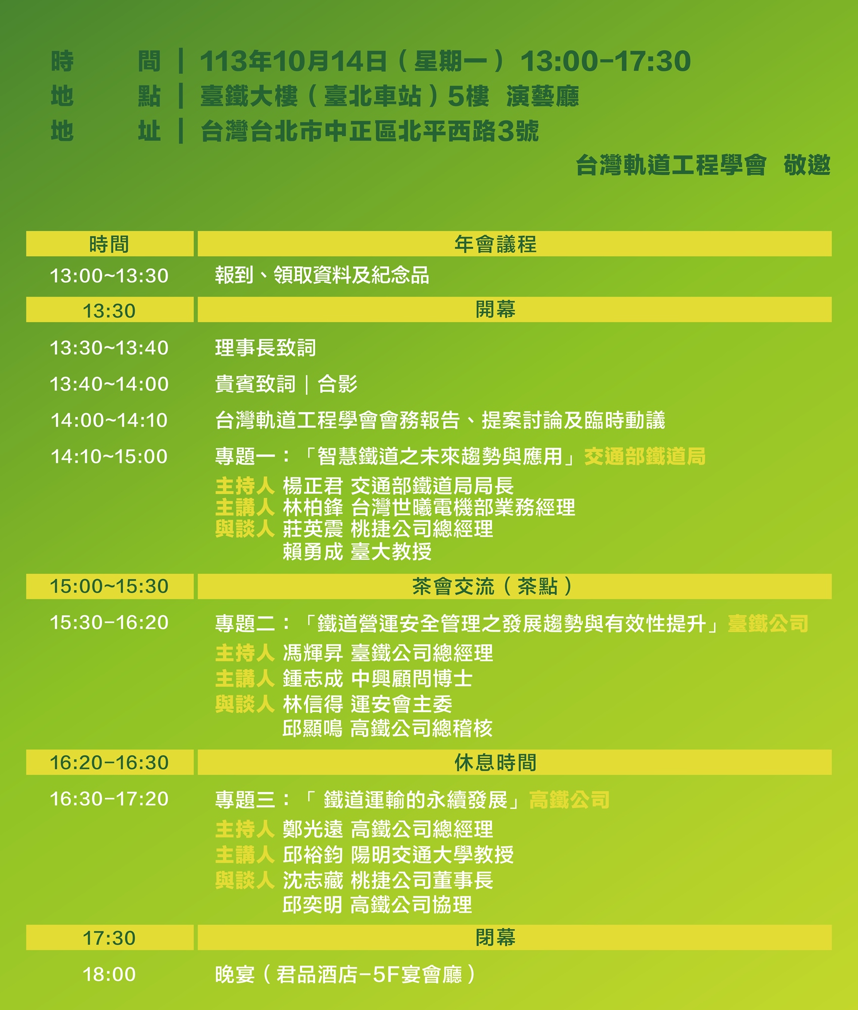 台灣軌道工程學會113年度會員大會(貴賓報名)
