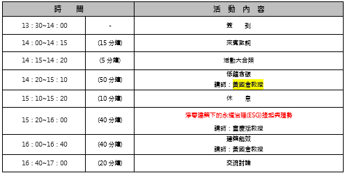 - 為響應節能減碳、節省資源,本次講習培訓,不提供免洗用具,請自行攜帶水杯。