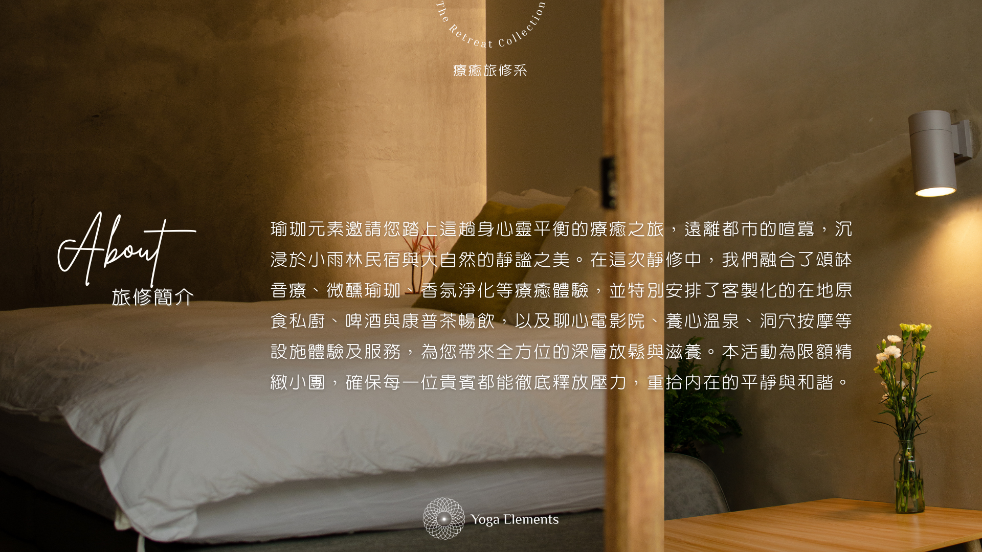 - 如有單人報名併房需求,可聯繫瑜珈元素為您協調室友。