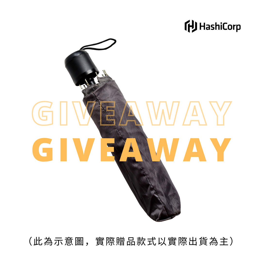 活動結束後從報名名單中隨機抽出幸運參加者,贈送 HashiCorp 原廠折疊雨傘 一支!