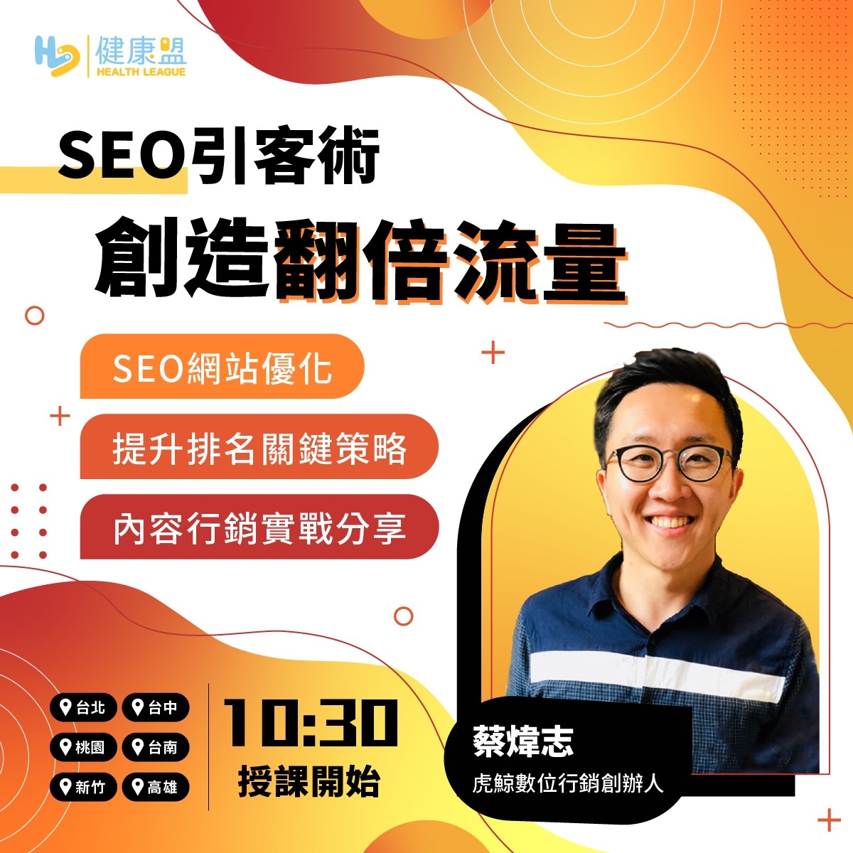📍引客講師:虎鯨數位行銷創辦人蔡煒志,SEO顧問專家,協助近百間企業進行數位轉型並建立 Google 排名策略。