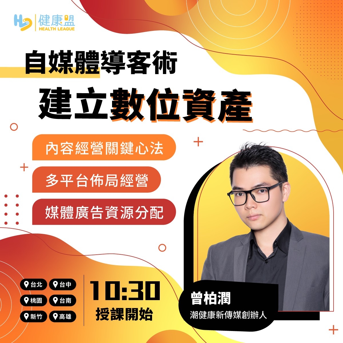 📍導客講師:潮健康創辦人曾柏潤,行銷顧問專家,專攻內容行銷與媒體投放,且與超過千位白袍專家合作。