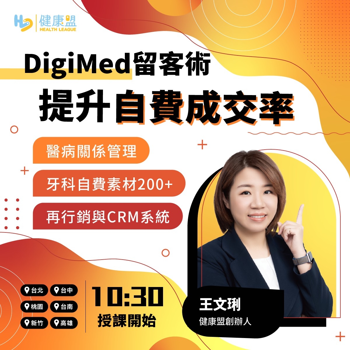 📍留客講師:健康盟創辦人王文琍,協助診所醫病關係管理與溝通,輔助患者自費率提高。