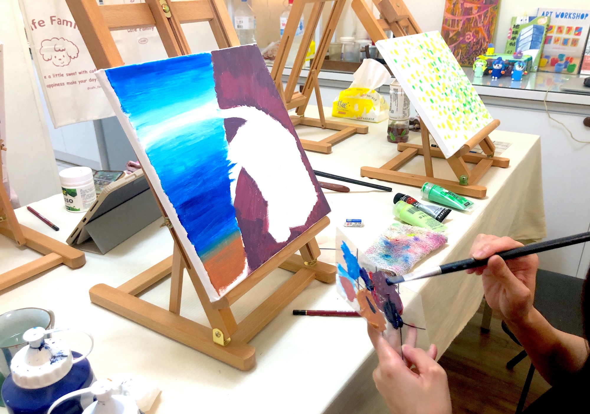 ◉提供壓克力顏料/畫材/畫架及圍裙