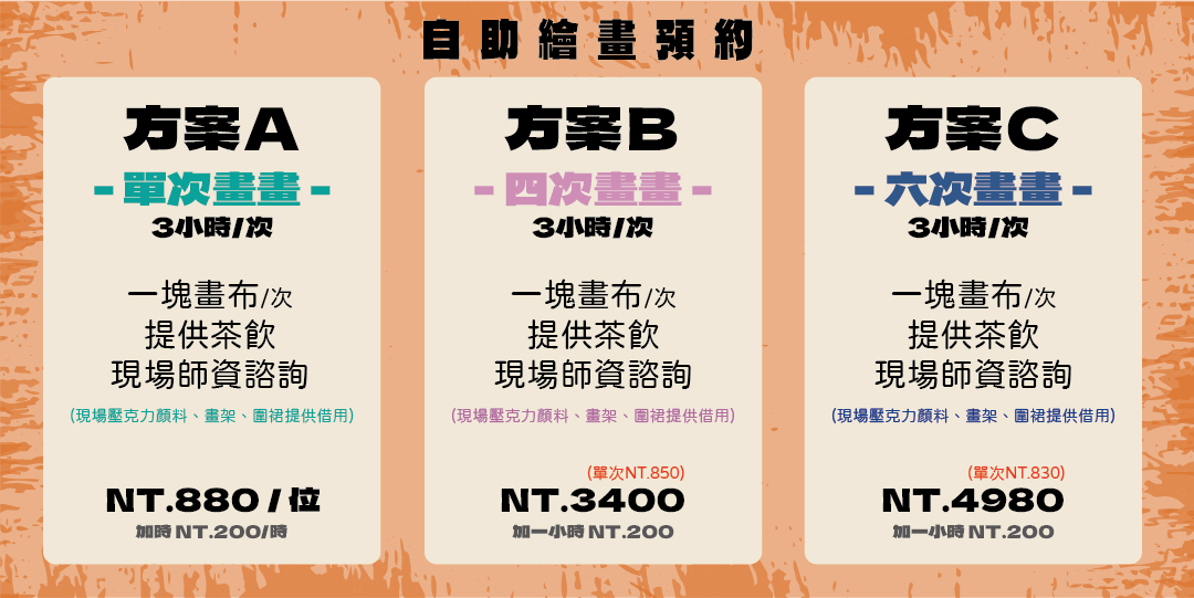方案如下,Acupass可以先預約方案A的單次畫畫: