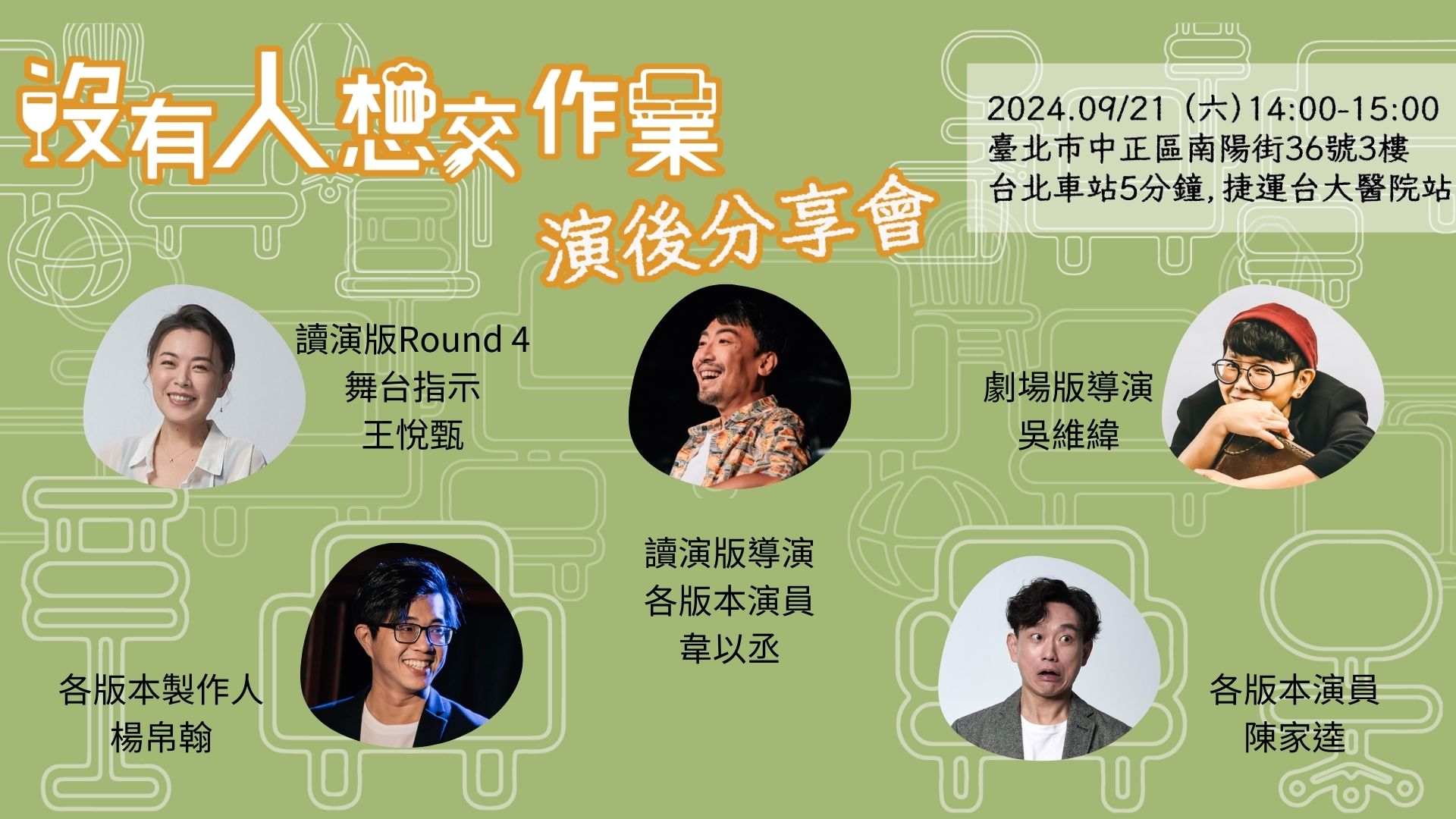 這次的演後分享會沒有演出的售票壓力了(呼),所以我們應該可以沒有包袱地開講,也歡迎你們提出想問的問題,一起來交流分享!