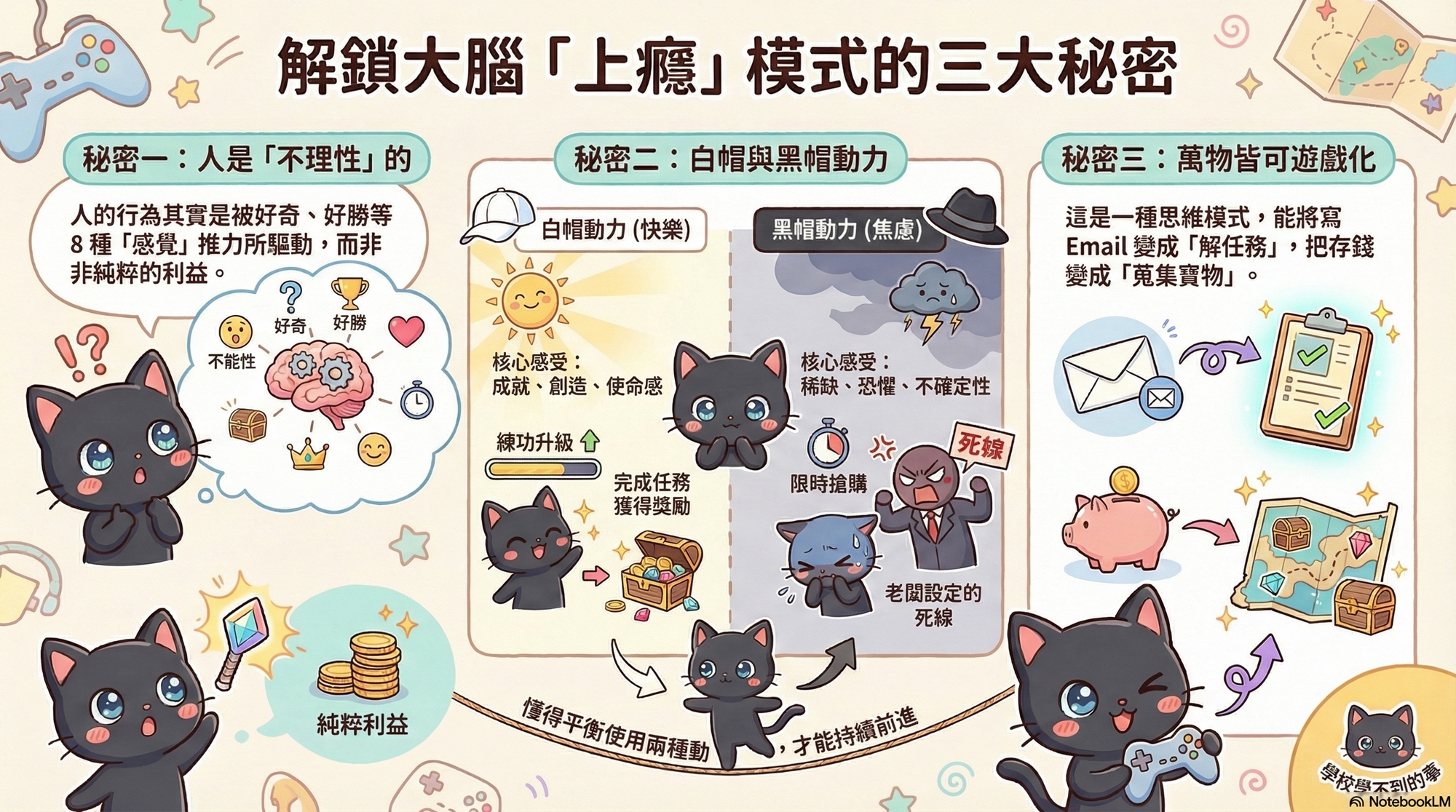 - 概念: 傳統經濟學認為人是理性的(有錢賺就會做),但遊戲化告訴我們,人其實是被「感覺」驅動的。